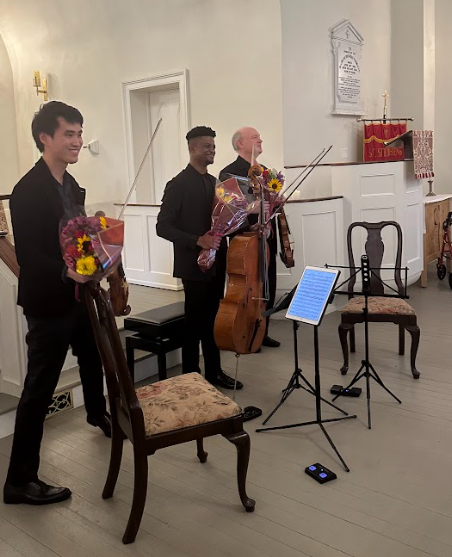 Kevin Zhu, Paul Neubauer, and Sterling Elliott captivated the audience with their sharp and dynamic playing. It was truly a joy to hear the incredible sounds they created highlighted by the acoustics of the church.